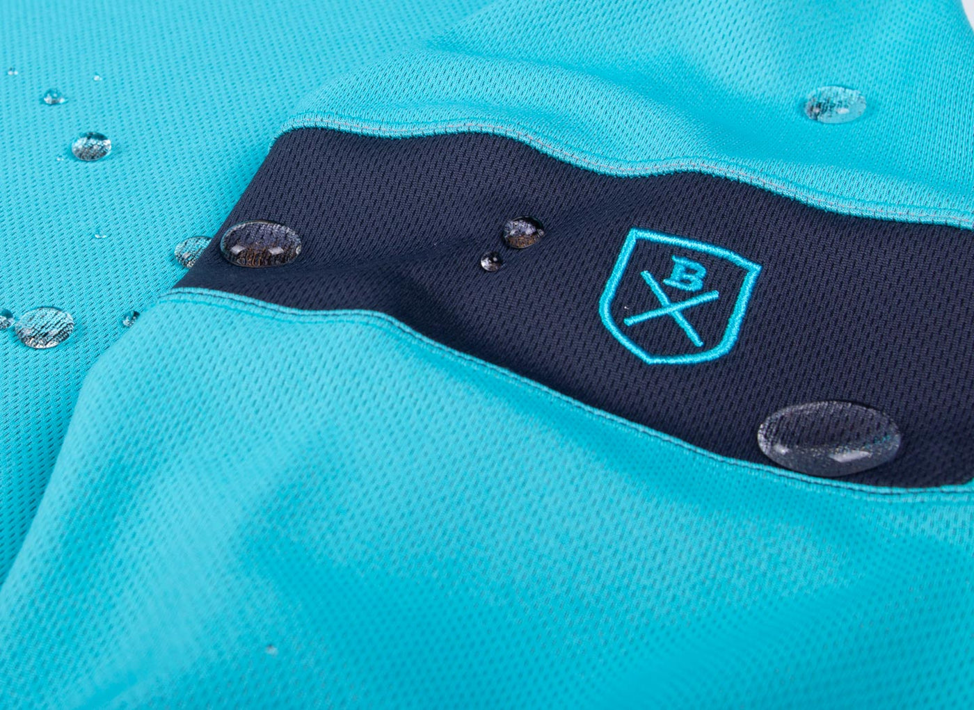 Bluesmiths Hydrophobic Shirts repel water, meaning they stay drier for longer.